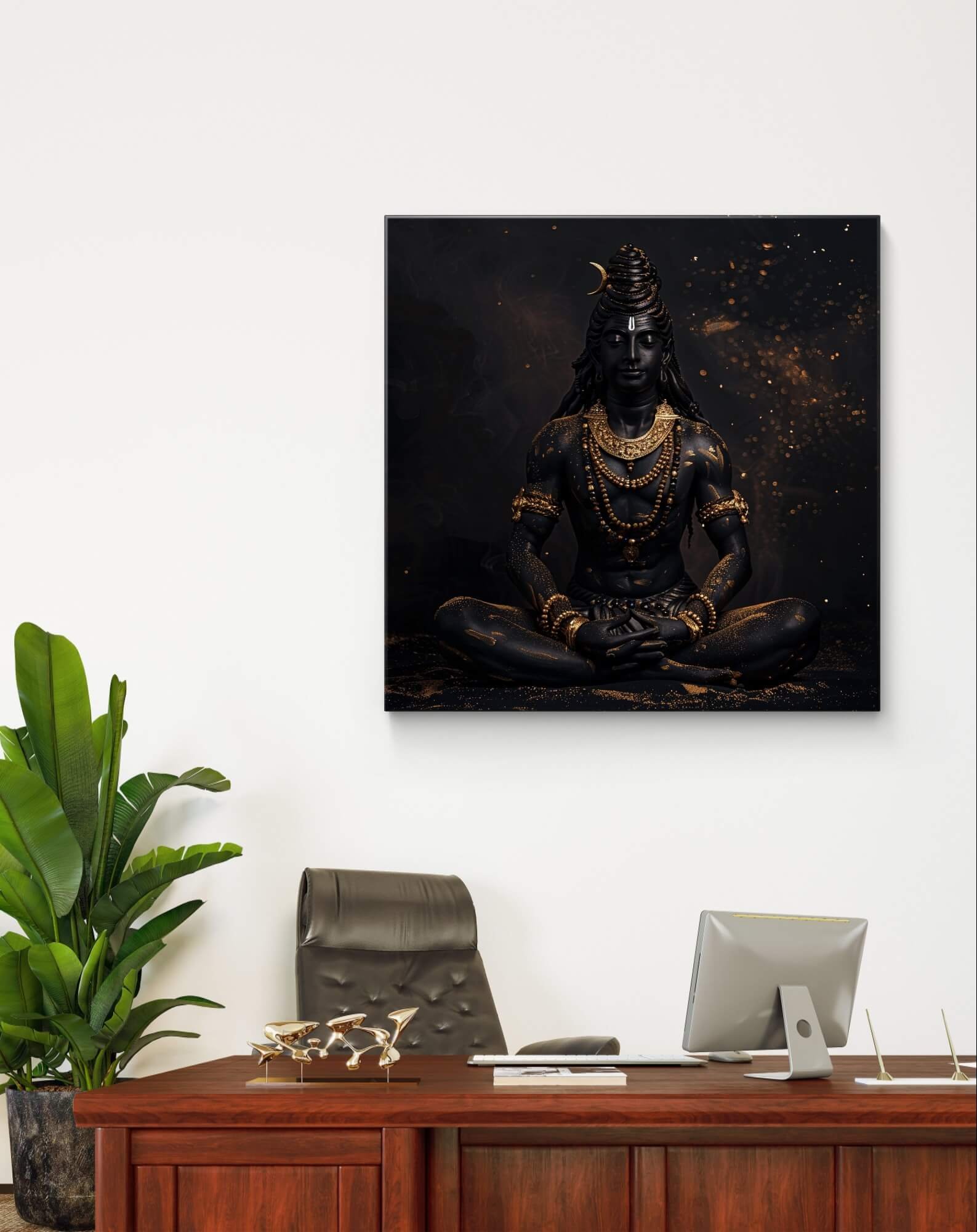Give your space a touch of serenity and elegance with our Black and Golden Aesthetic Shiva Wall Poster Art. Perfect for those who appreciate spiritual motifs infused with modern design, this piece features the majestic image of Lord Shiva set against a sleek black background, highlighted with shimmering golden accents. Crafted from durable, textured vinyl, this poster ensures a high-quality look with It’s seamless print, refreshingly free of any joints or breaks. Easy to install and simple to maintain, it’s an ideal choice for anyone looking to add a meaningful yet stylish element to their decor.