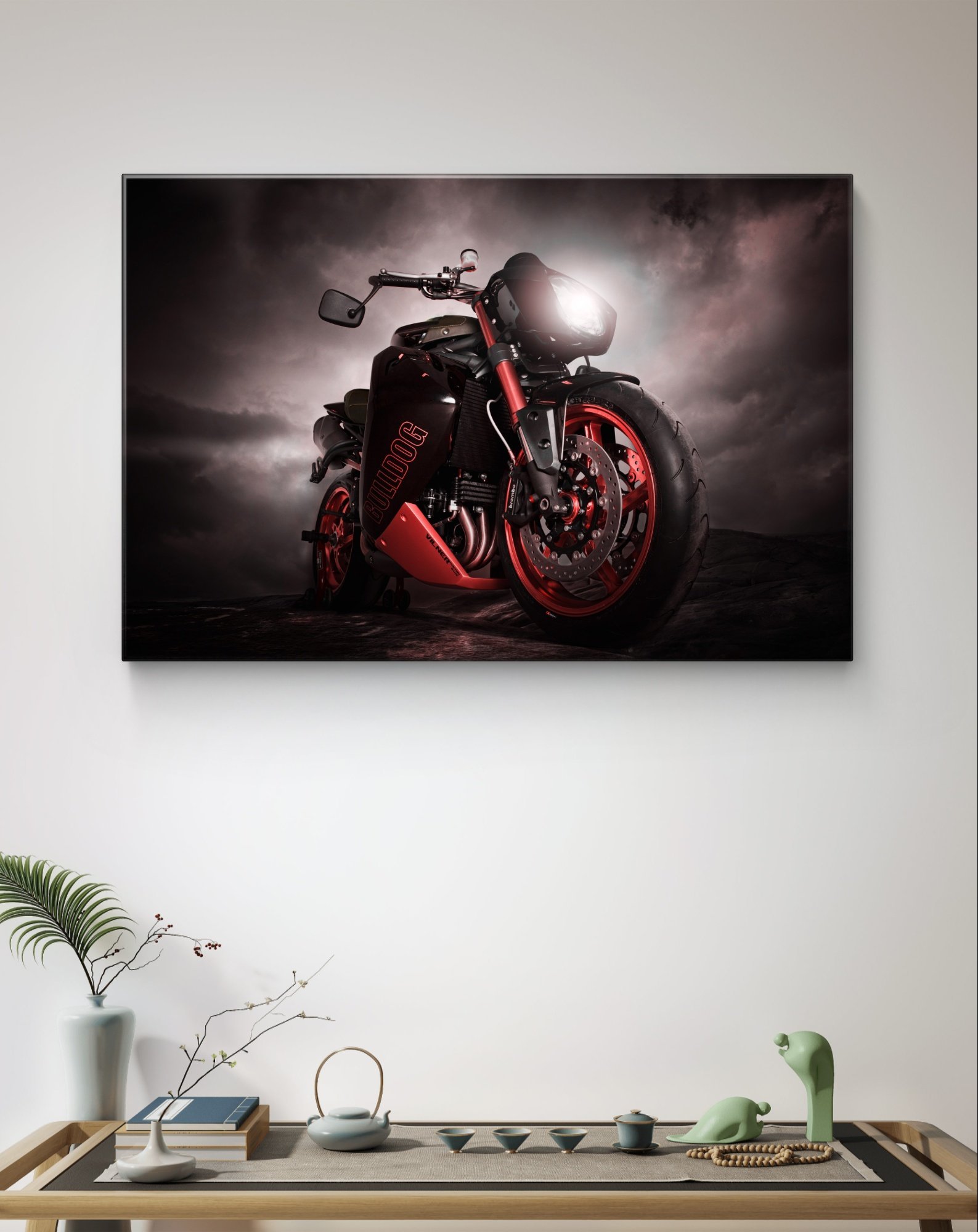 Gear up to transform your space with our Bulldog Power Bike Wall Art Print, perfect for adding a pop of energy and inspiration. Crafted from highly durable, textured vinyl, this print showcases a powerful image of a bulldog on a vibrant motorcycle, symbolizing strength and freedom. The seamless design ensures an expansive view without any interruptions, making it a striking focal point.