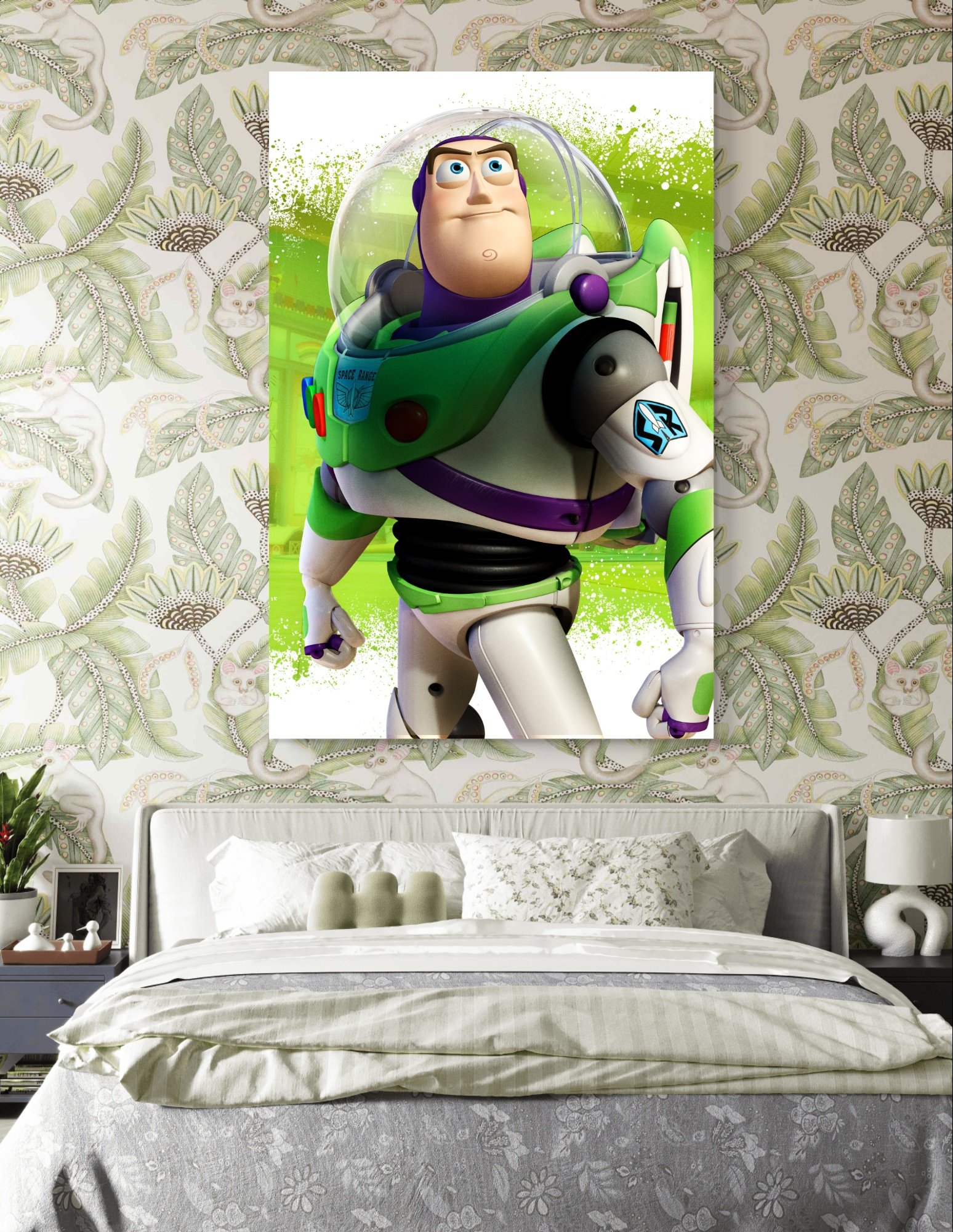 Bring the excitement of intergalactic adventures right into your space with our Buzz Lightyear Ready for Action Wall Art Hanging! Perfect for sparking imaginations and dreams of outer space, this vibrant piece of art features everyone’s favorite Space Ranger, Buzz Lightyear, set against a backdrop of distant stars and planets in bold, dynamic colors.