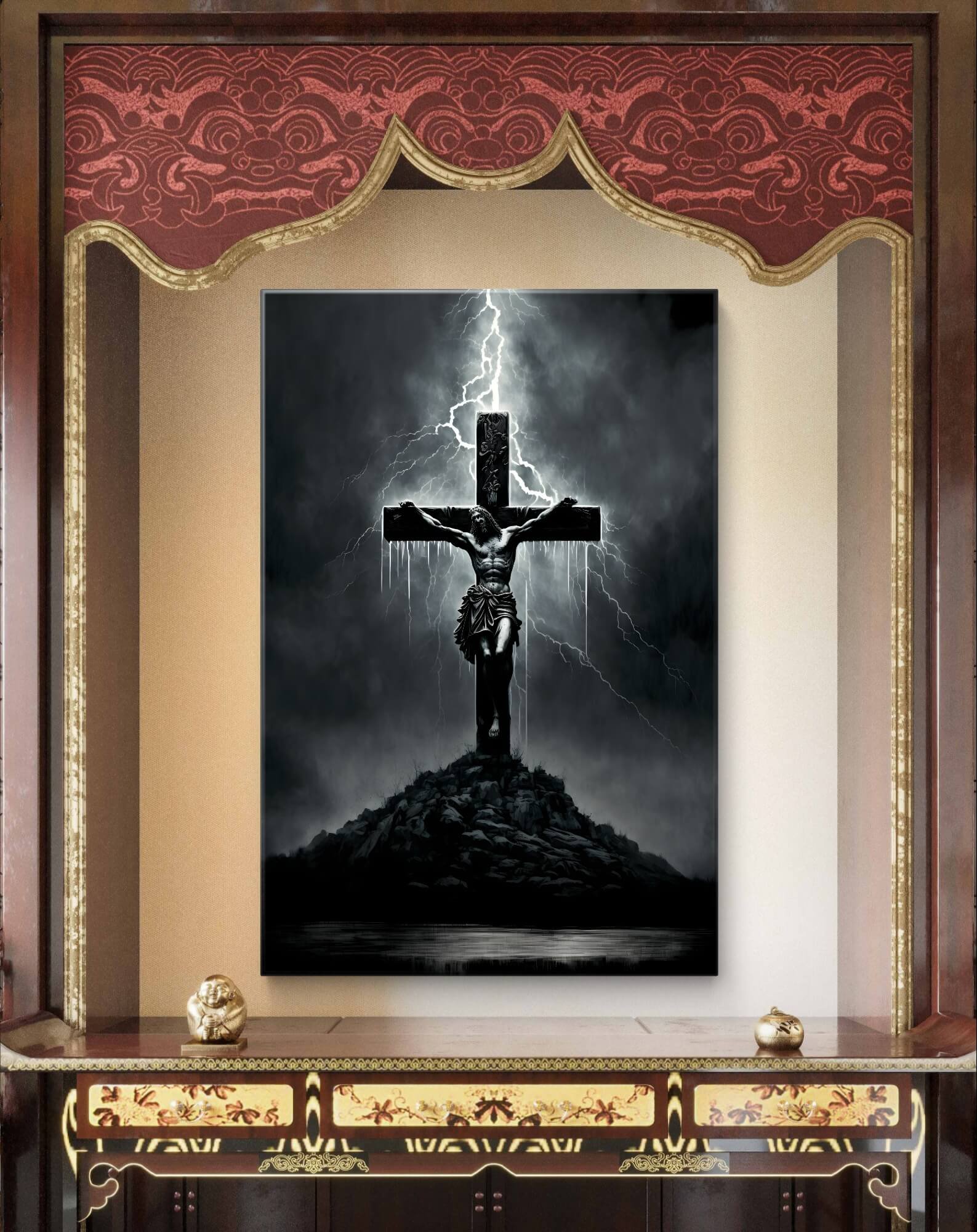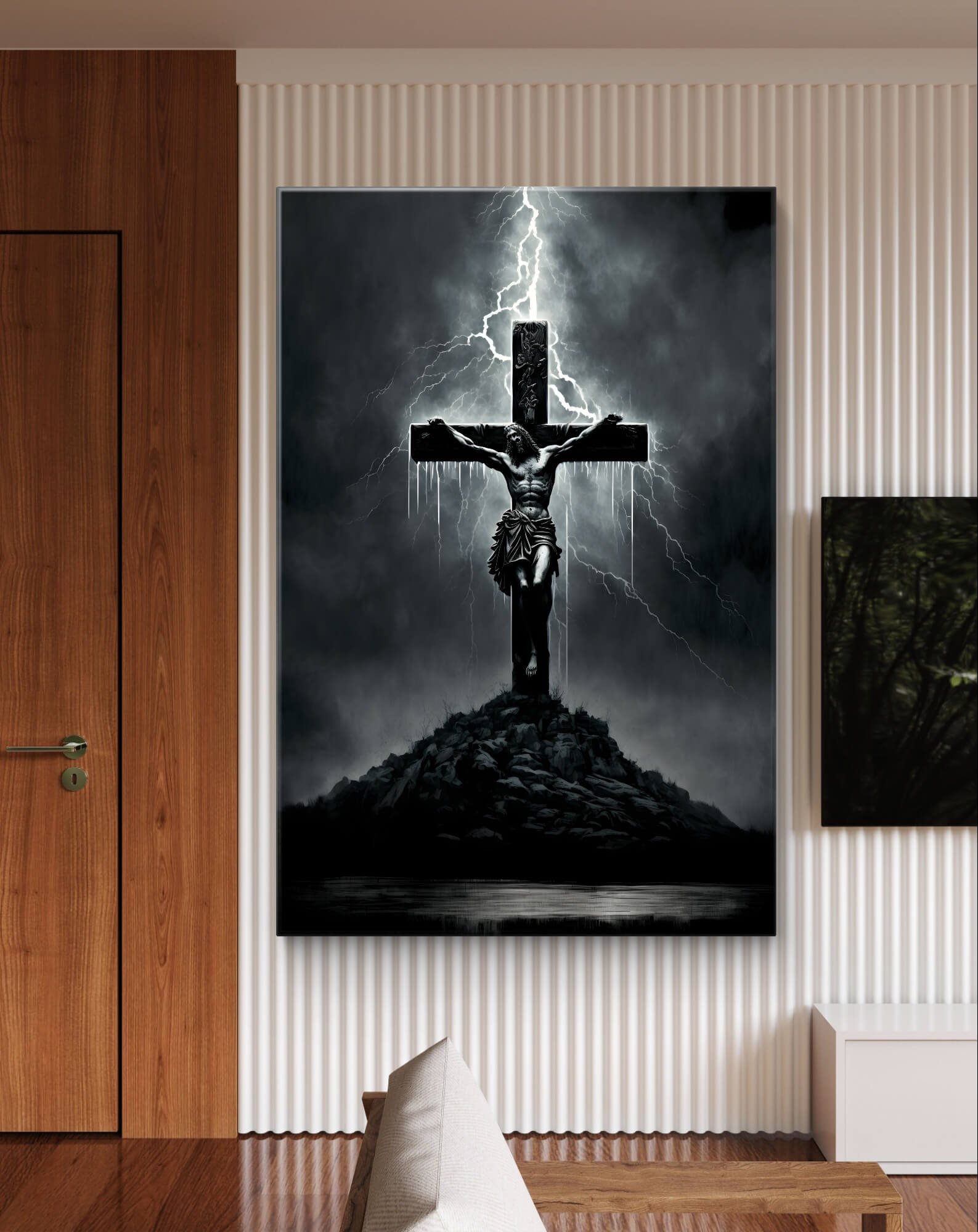 The Divine Storm Jesus Christ Wall Art Print is ideal for those looking to infuse their space with a sense of peace and awe. It serves as a constant reminder of faith and resilience, perfect for personal meditation spaces or as a meaningful focal point in communal areas.