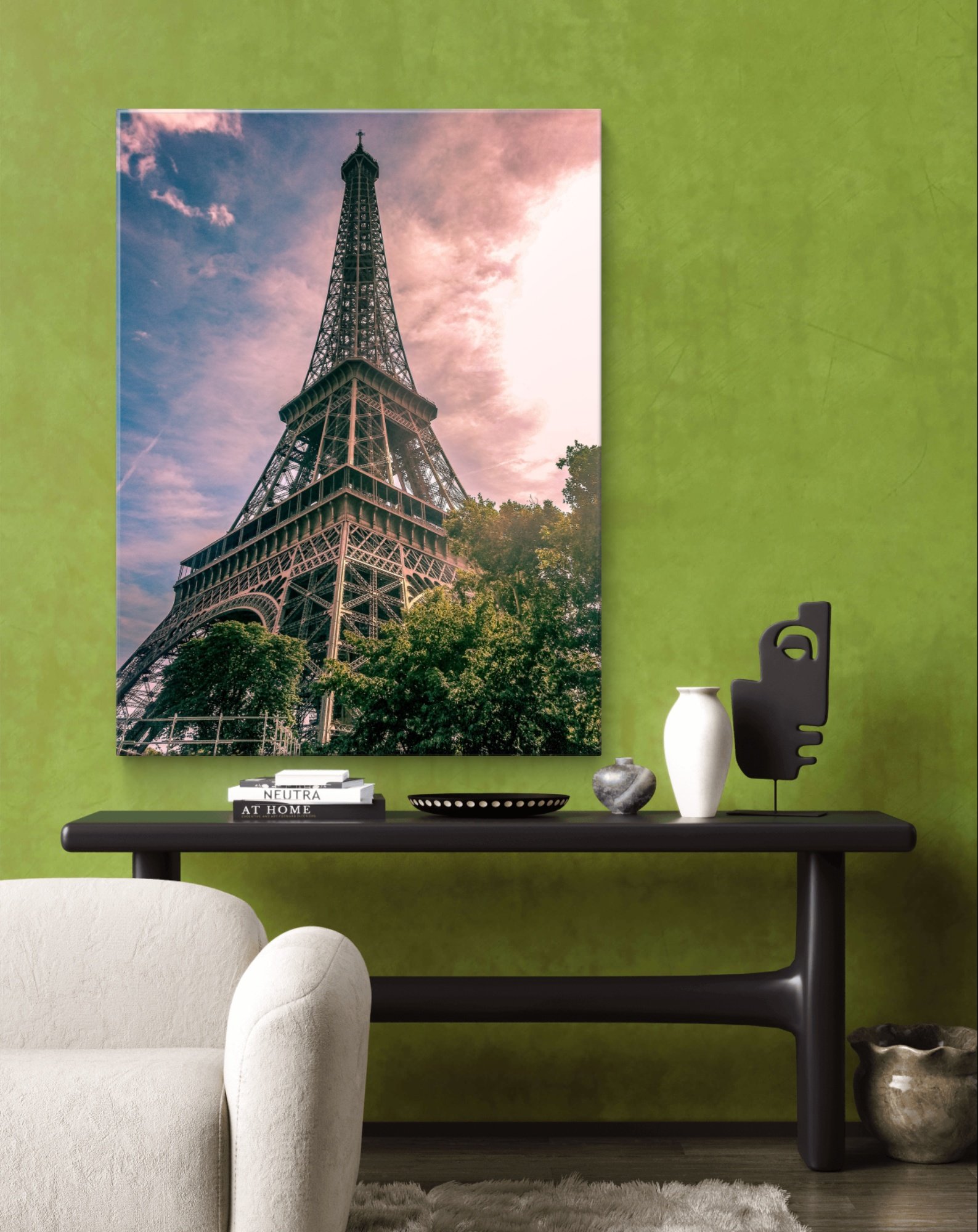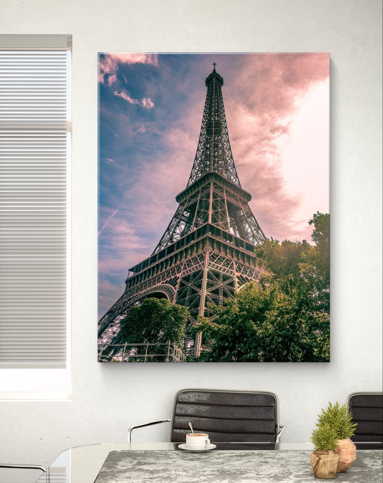 Transform your space with the “Eiffel Tower Under Pink Skies Wall Art,” a breathtaking mural that captures the essence of one of the world’s most iconic landmarks against a vibrant pink sky. This piece, permeated with hues of soft pink and gentle grays, sets a dreamy, romantic mood that completes both modern and traditional decor schemes. Crafted from very durable textured vinyl, this seamless mural not only promises a stunning visual impact but also assures longevity and ease of maintenance.