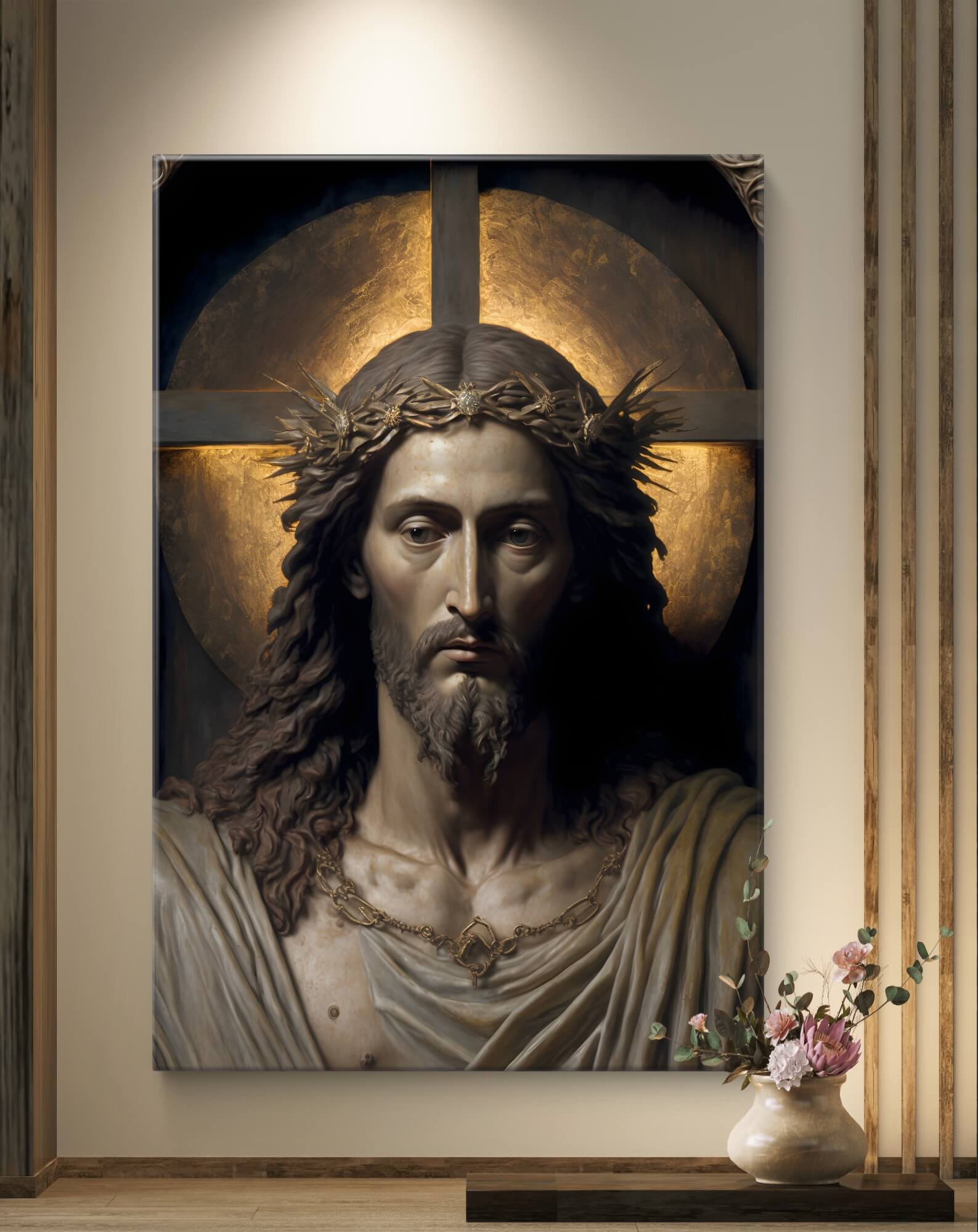 Ideal for those looking to enhance their home or office with a touch of divinity and elegance, the Golden Savior Christ Wallpaper Mural is an inspiring addition that speaks to the soul.