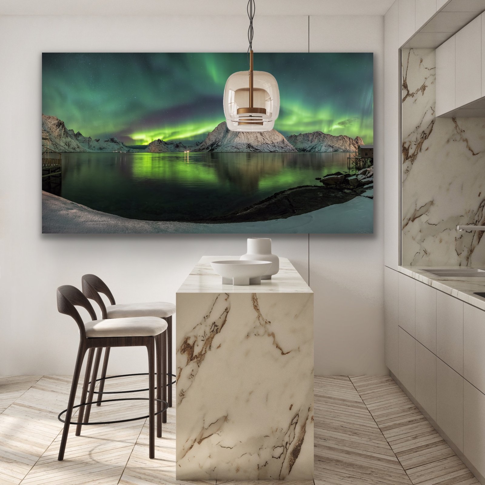 Enhance your living or workspace with the serene beauty of our Green Lights Wall Art Hanging – a simple way to breathe life into any environment.