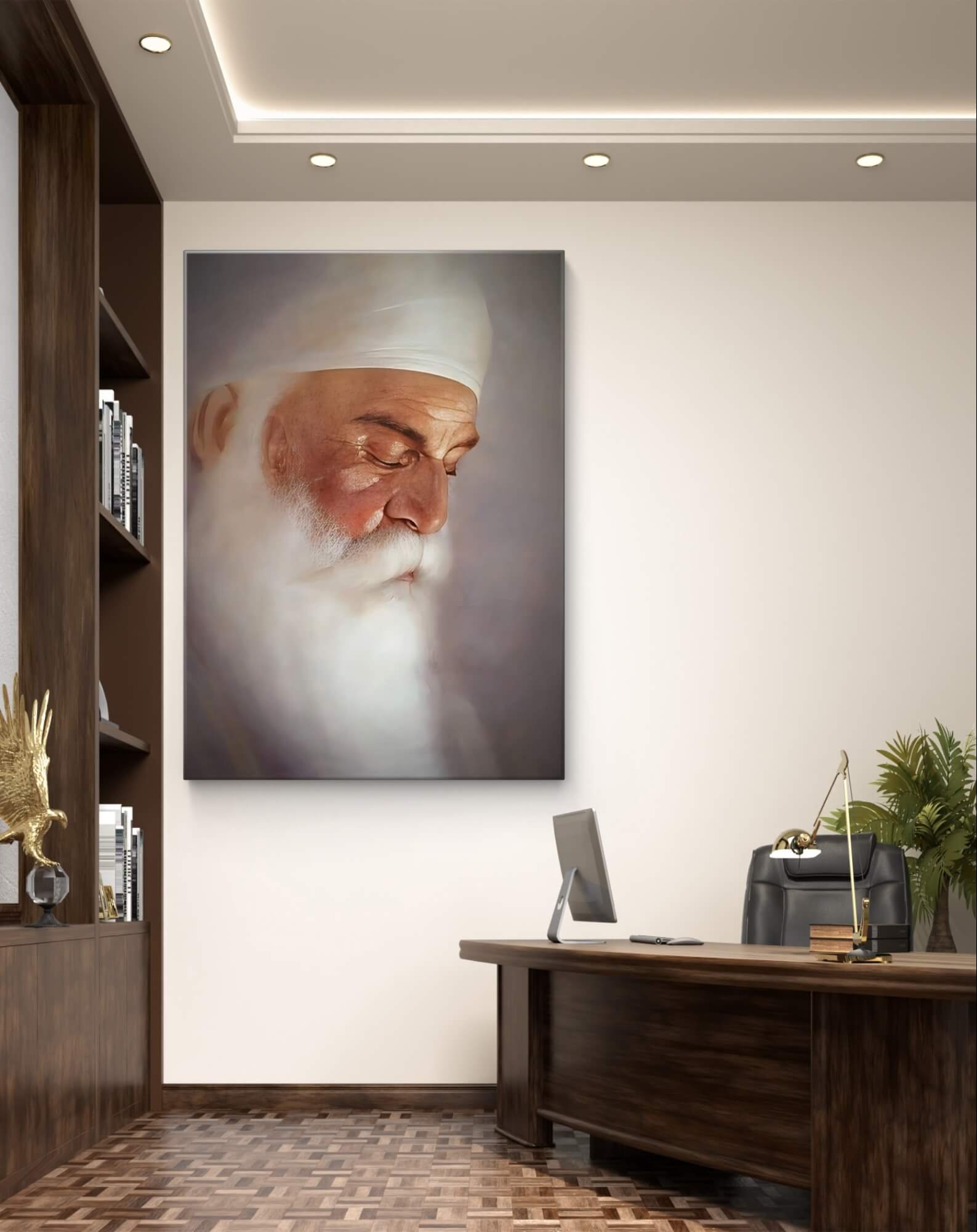 Transform your space into a serene sanctuary with our Guru Nanak Dev Ji’s Peaceful Meditation Wall Art Theme. This beautifully crafted piece features a calming depiction of Guru Nanak Dev Ji, the revered founder of Sikhism, in deep meditation. The subtle, warm colors and gentle composition of the mural bring a sense of peace and tranquility to any room.
