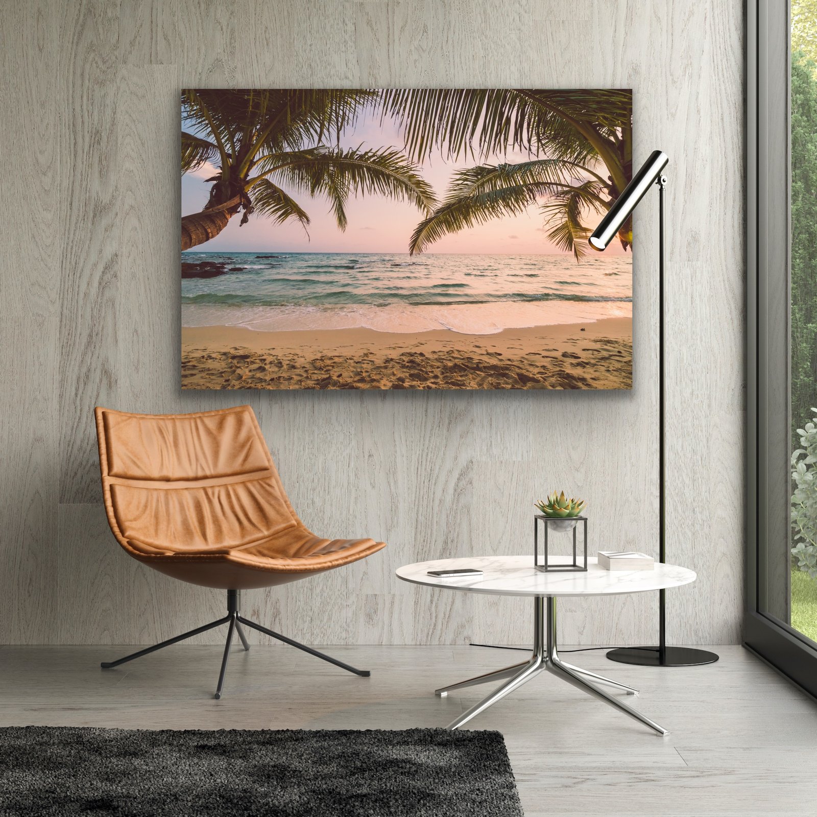 Transform any space into a serene beach oasis with our Palm Beach Wall Art Print. Embrace the calming beauty of seaside landscapes captured in this stunning portrayal. This artwork, featuring a picturesque palm-lined beach with gentle waves and a breathtaking sunset, brings a soothing atmosphere to any room. The vibrant colors blend seamlessly into a modern aesthetic that compleases the eye and calms the mind.