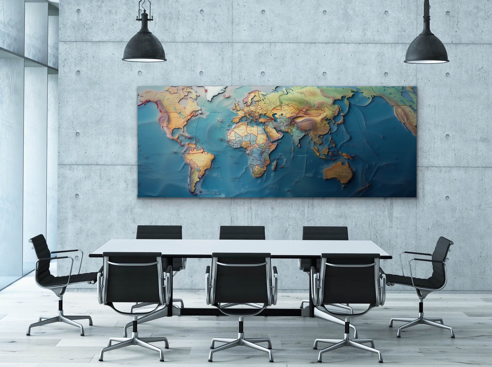 This world map mural is not just a decorative piece but a celebration of global culture and geography. Whether in a home office, a classroom, or a business foyer, it sets a tone of intellectual flair and global appeal.