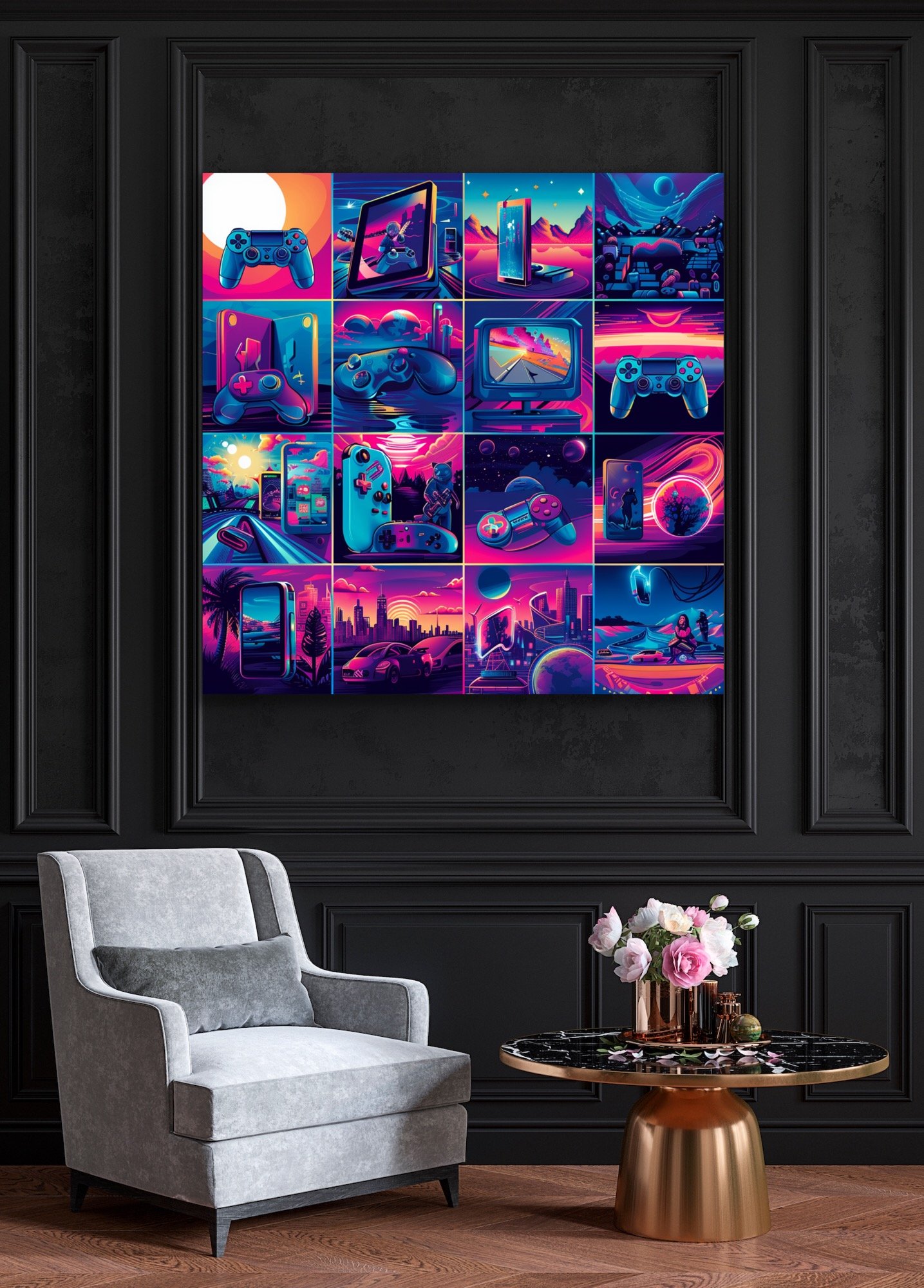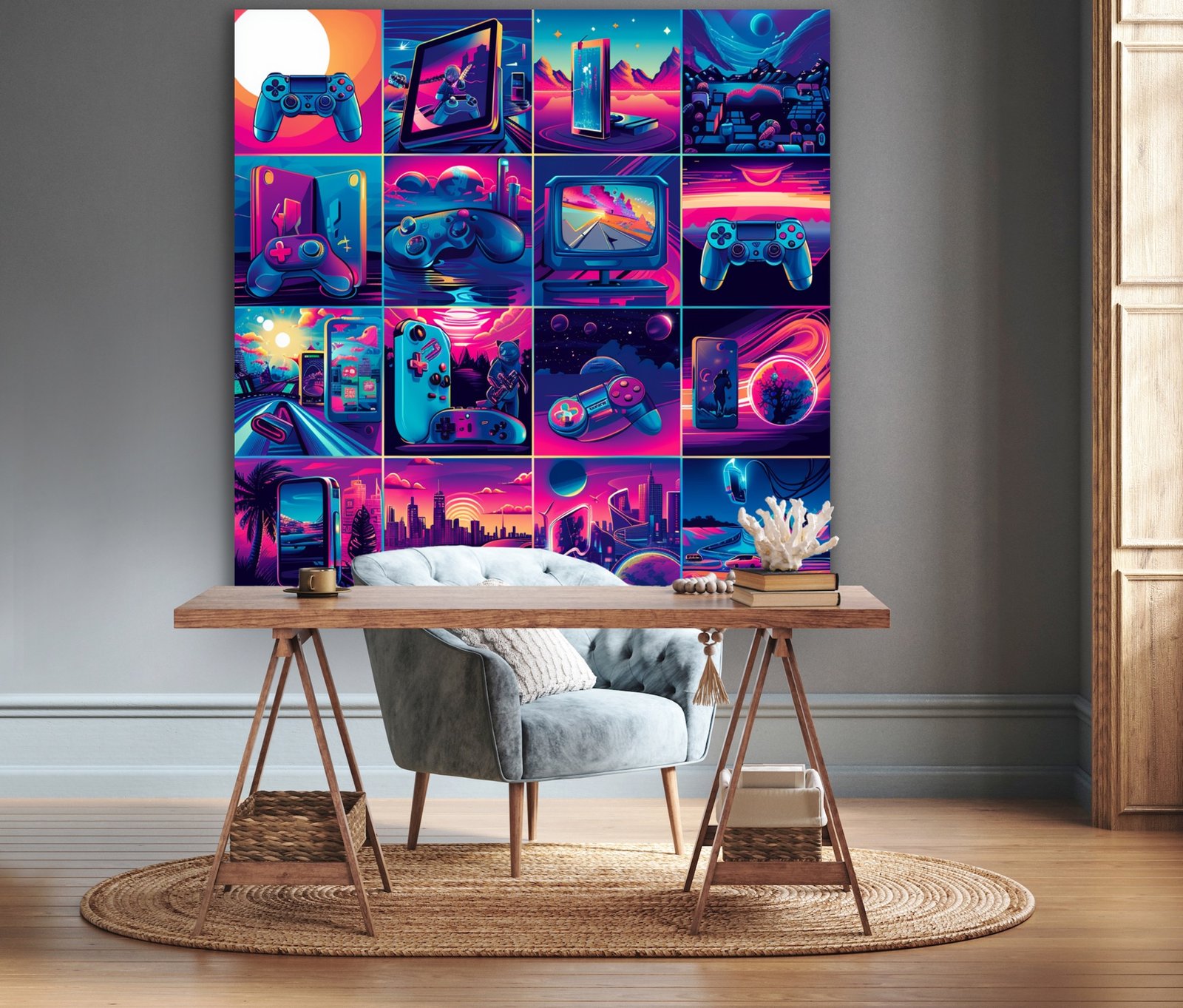 Bring an electrified atmosphere to any room with the Retro Artistic Gaming Wall Art Print! Perfect for gaming enthusiasts and lovers of all things retro, this wall decoration features a vibrant design that combines the nostalgia of classic video games with a modern artistic twist. The rich, saturated colors pop, making it a striking focal point in a game room, living room, or even a bedroom that’s in need of some fun. Designed on highly durable, textured vinyl, this print is not just stunning to look at but built to last without any seam interruptions. Installation is a breeze, and upkeep is just as simple, ensuring that your space continues to look fabulous without extra effort.