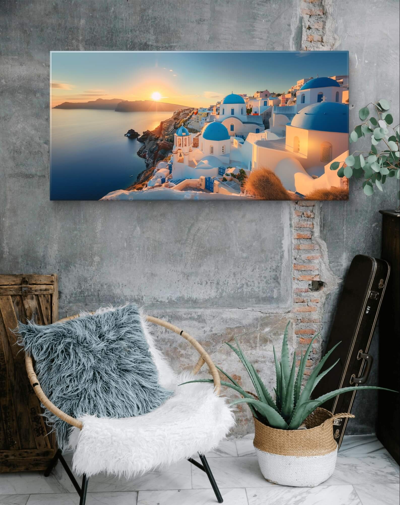 Bring a touch of the serene and picturesque Santorini to your space with our Golden Horizon Wall Art. This vibrant artwork captures the essence of a sunset over the iconic cliffs of the Greek island, adding a stunning visual appeal to any room. The rich, warm colors promise to enhance the mood, fostering a sense of tranquility and beauty.