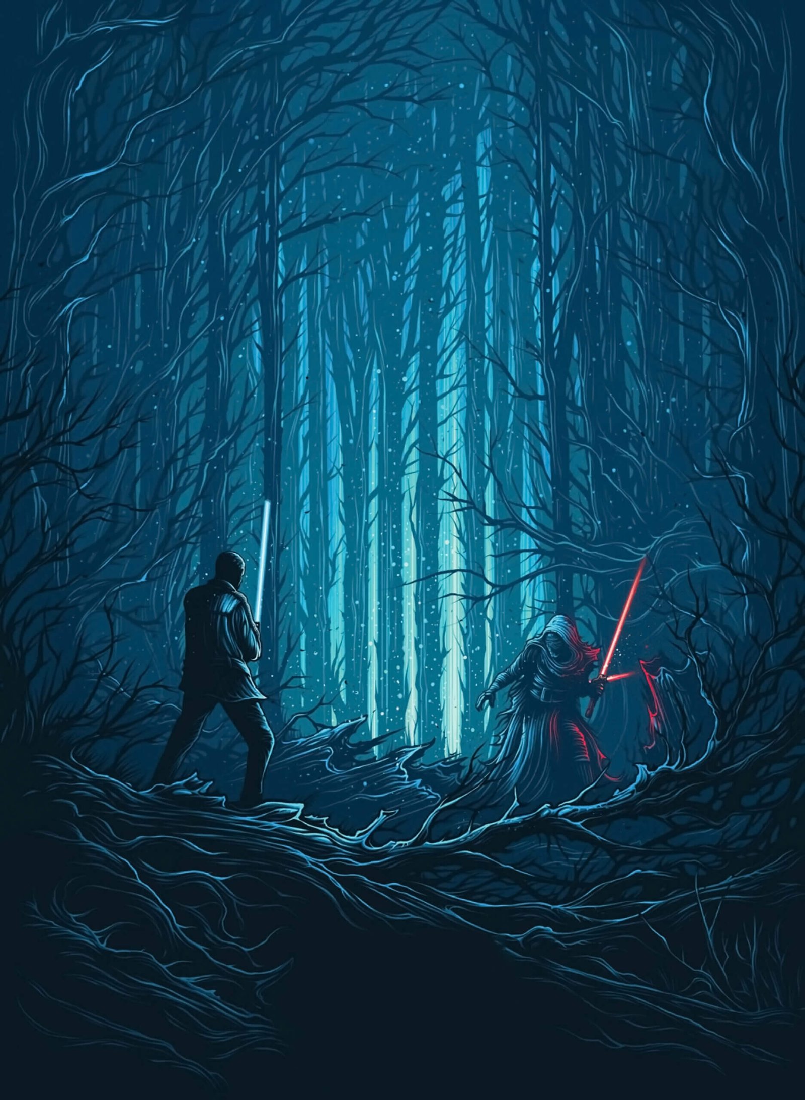 – Features iconic Star Wars themes set in a mesmerizing dark forest backdrop.