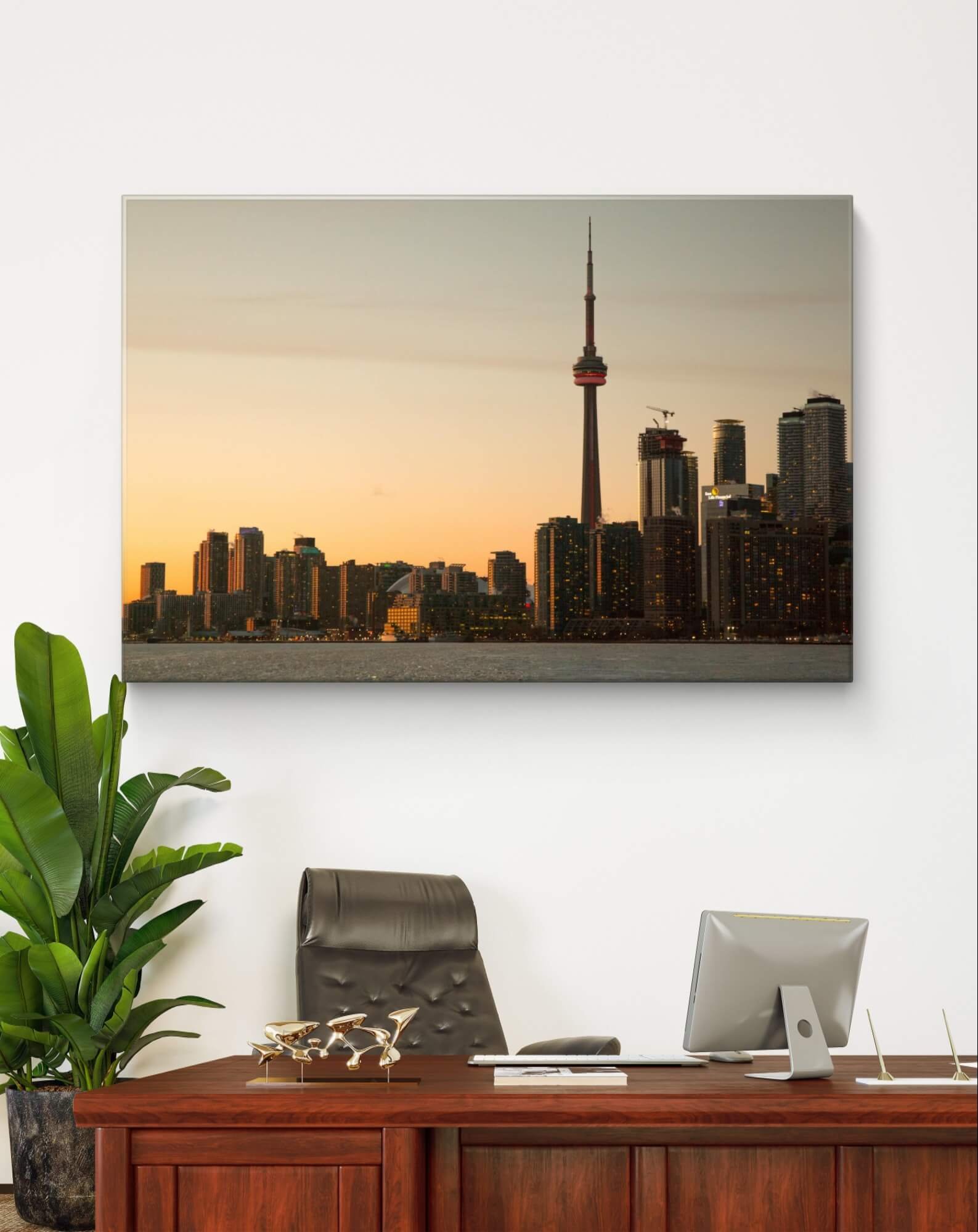 Bring the enchanting allure of city life into your space with our “Sunset over the Skyline” Wall Art Hanging. This breathtaking piece captures a mesmerizing sunset descending over a bustling city skyline, all printed on high-quality, textured vinyl that mimics the intricate details of a fine canvas. The vibrant hues of orange, pink, and deep blue set against the shadowy outlines of urban structures convey a modern yet timeless ambiance, perfect for adding a touch of sophistication and warmth to any room.