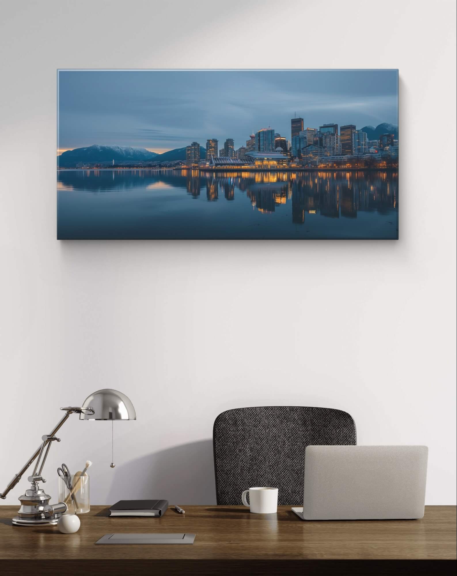 Transform any room into a peaceful urban oasis with the Vancouver Dusk Serenity Wall Art Hanging. This stunning piece captures the serene beauty of Vancouver at dusk, featuring a breathtaking cityscape awash in soft, twilight hues. The modern theme of the artwork, combined with It’s subtle colors, creates a soothing atmosphere that is perfect for unwinding after a busy day.