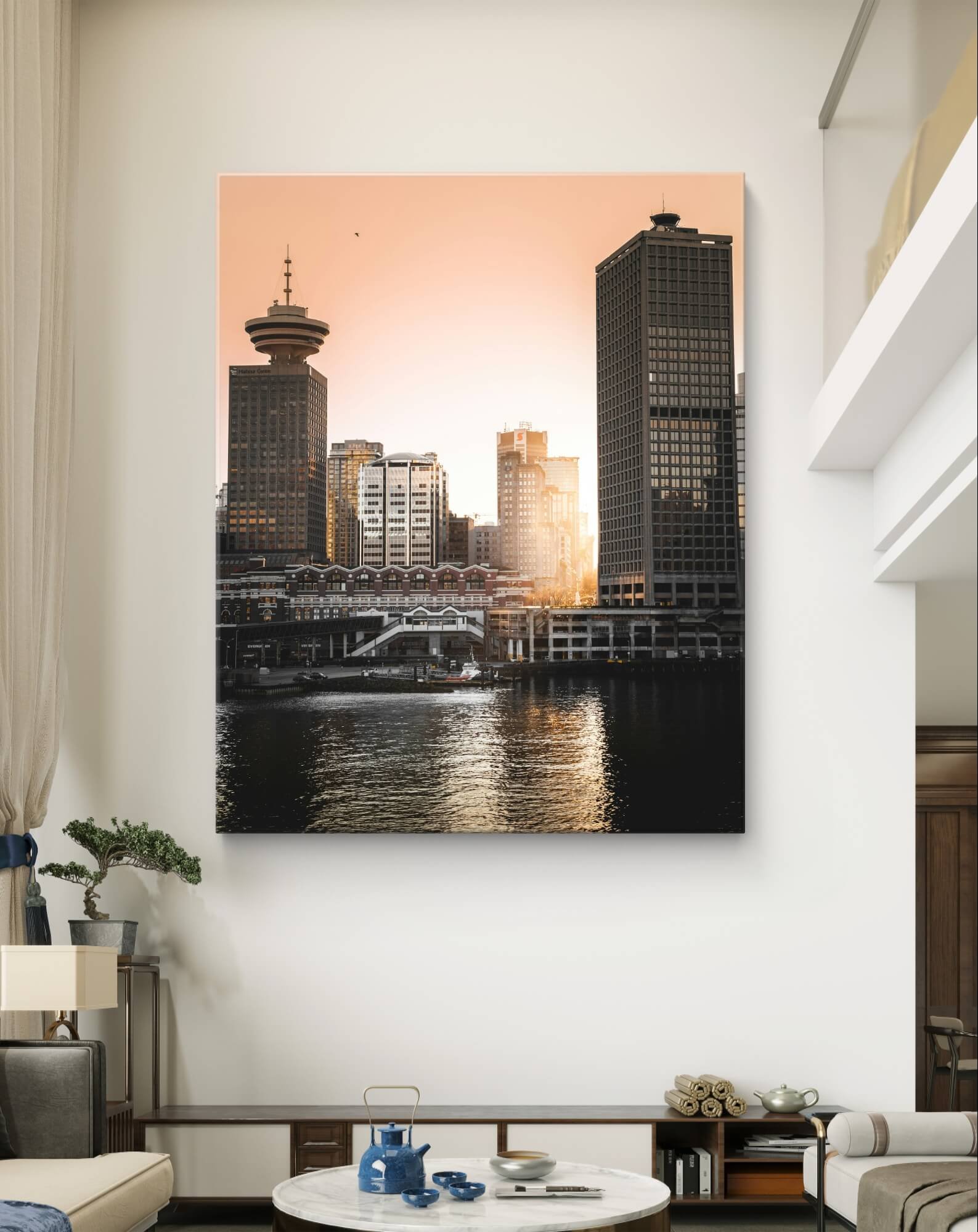 – This vivid mural brings the enchanting warmth and calm of a Vancouver sunset into any setting.