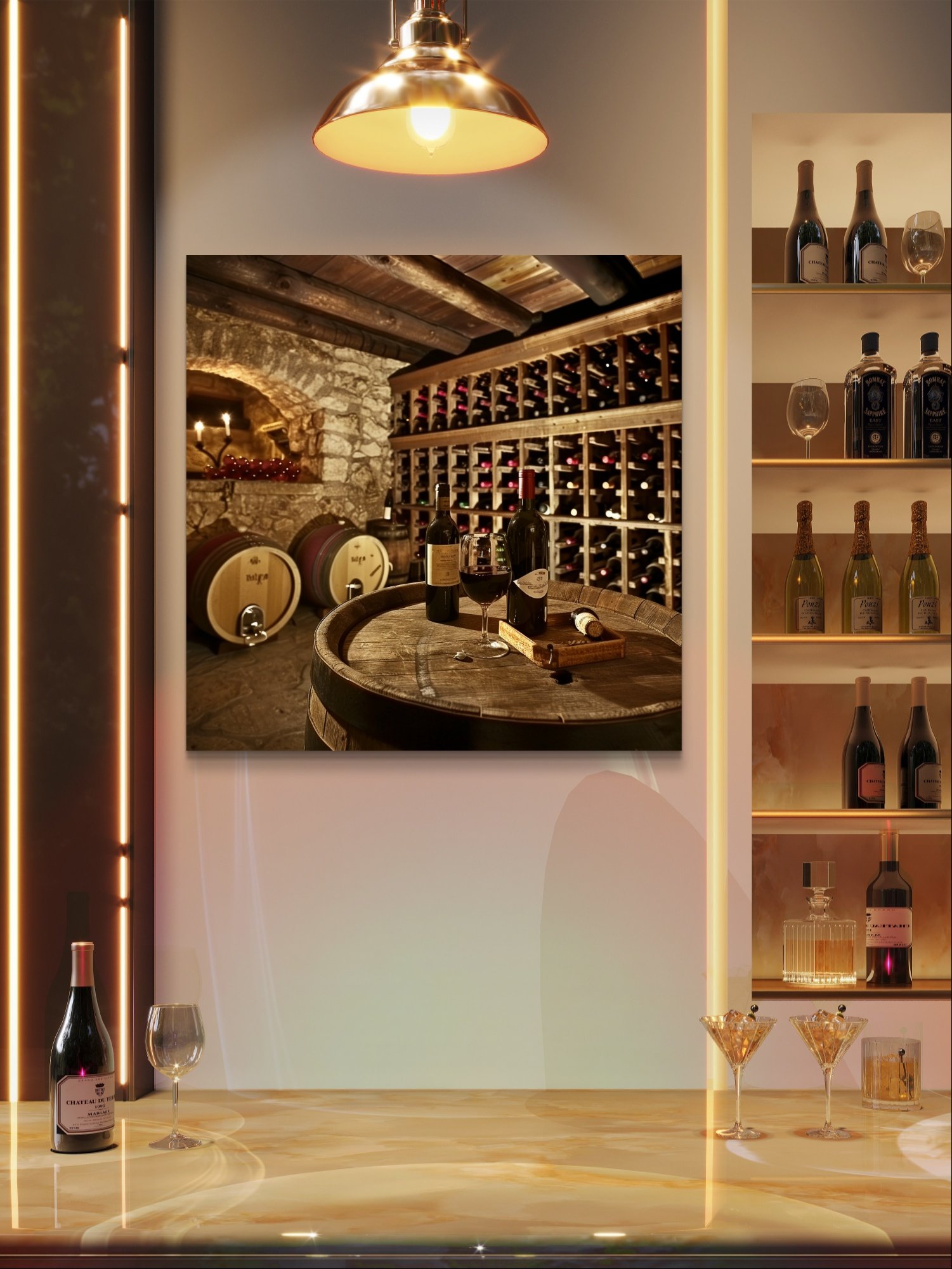 Enhance the ambiance of any space with our Vintage Cellar Charm Wall Canvas. This distinctive piece is perfect for imbuing any room with a touch of aged elegance. Whether in a cozy living room corner, the dining area, or adorning the entrance hall, this timeless masterpiece effortlessly elevates your space.